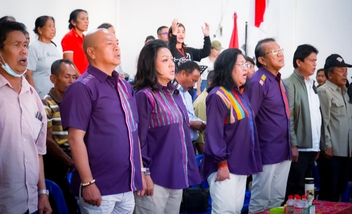 Hadir Calon Wabup Taput, Sarlandy Hutabarat beserta istri, tokoh masyarakat, tokoh adat, dan para lansia yang berada di Kecamatan Adiankoting.(Ahmad Rizal)